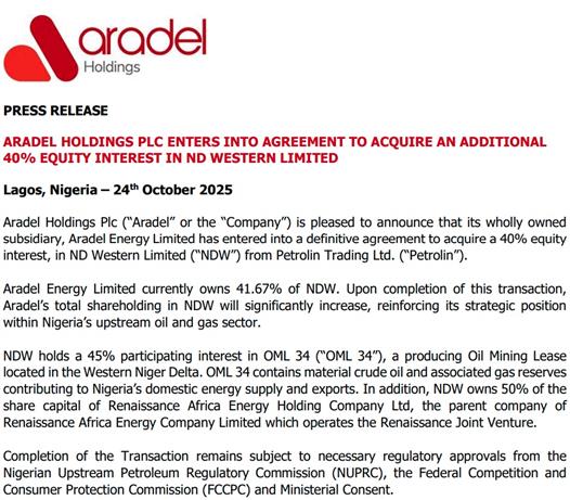 $ARADEL net profit was N 33.7b while $SEPLAT net profit was N 30.6 Billion in the first quarter of 2025.
