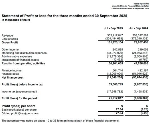 $NESTLE reported a loss for first 9 months of 2023. Finance cost is the reason.
